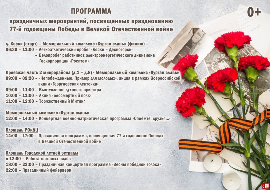 Программа праздничных мероприятий, посвященных празднованию 77-й годовщины Победы в Великой Отечественной войне в Десногорске